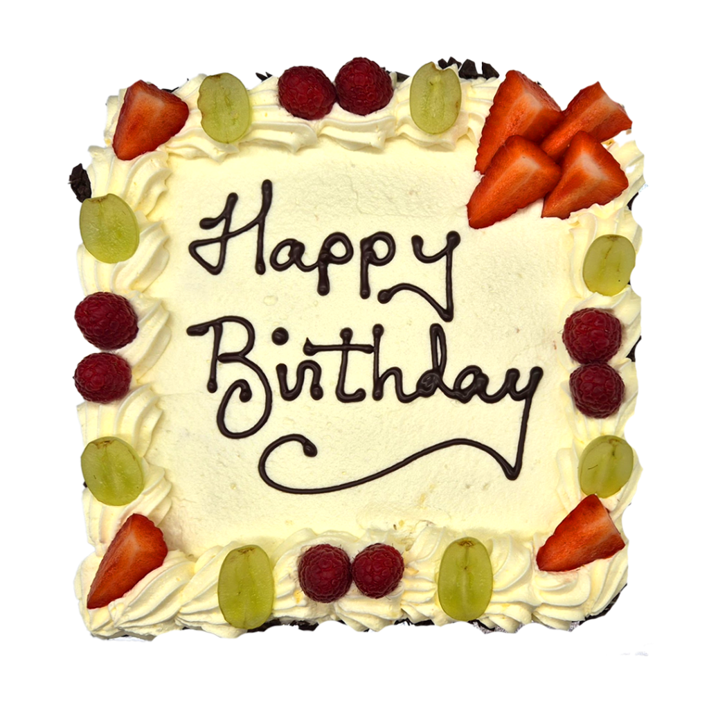 Savour the perfect harmony of sweetness and freshness with Buckley’s Fresh Fruit & Cream Cake. Choose between vanilla or chocolate sponge, paired with cream or buttercream fillings, and select from square or round sizes to suit any occasion. Each cake is a work of art, adorned with chocolate shavings along the sides and topped with a lavish array of fresh fruit and cream.
